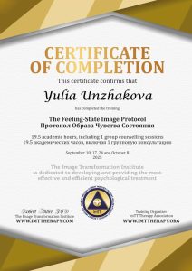 - 2024г.-The Image Transformation Institute, USA, ImTT basic course( Терапия трансформации образа, базовый курс) , 18 часов